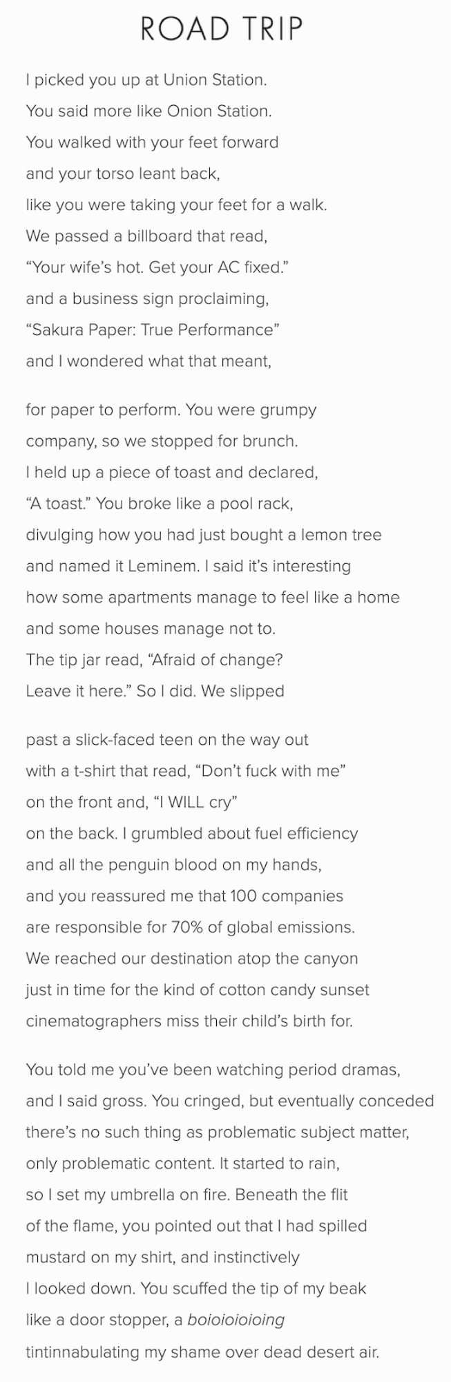 "Road Trip," The Penn Review, University of Pennsylvania, Online, December 2024