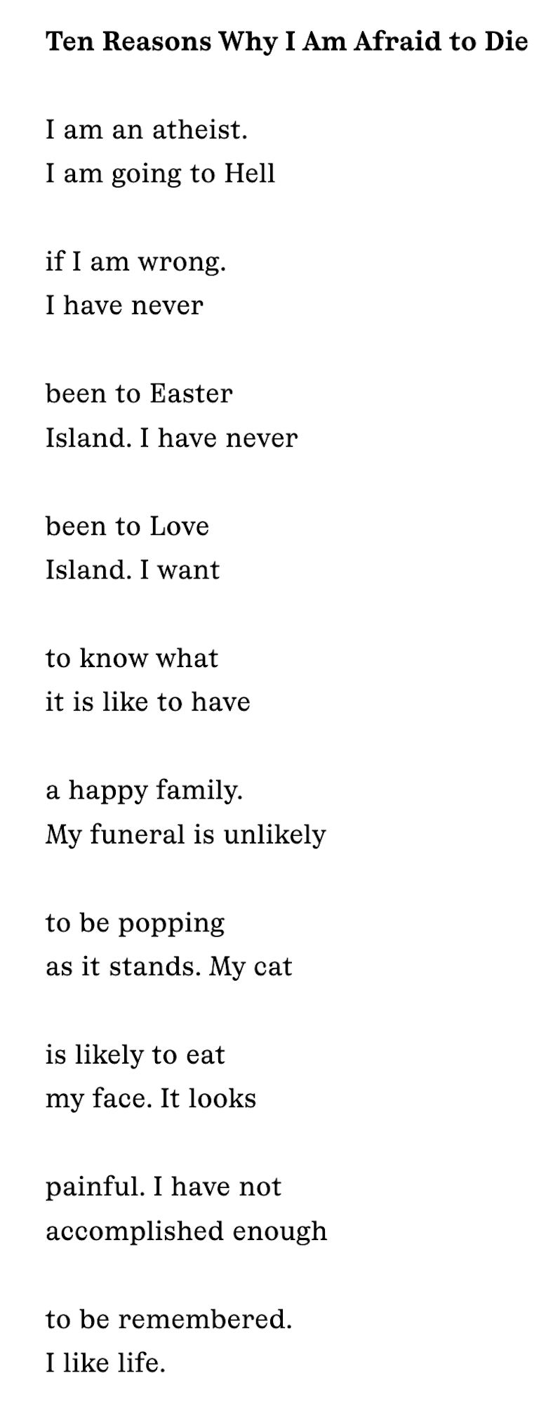 "Ten Reasons Why I Am Afraid to Die" & "Never Will I Ever," The Rumpus, Online, February 2026