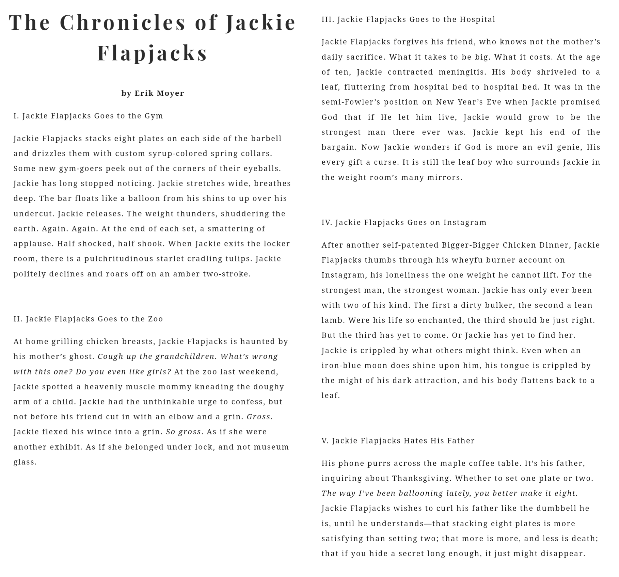 "The Chronicles of Jackie Flapjacks," Carte Blanche Magazine, Flash Fiction, Online, June 2025
